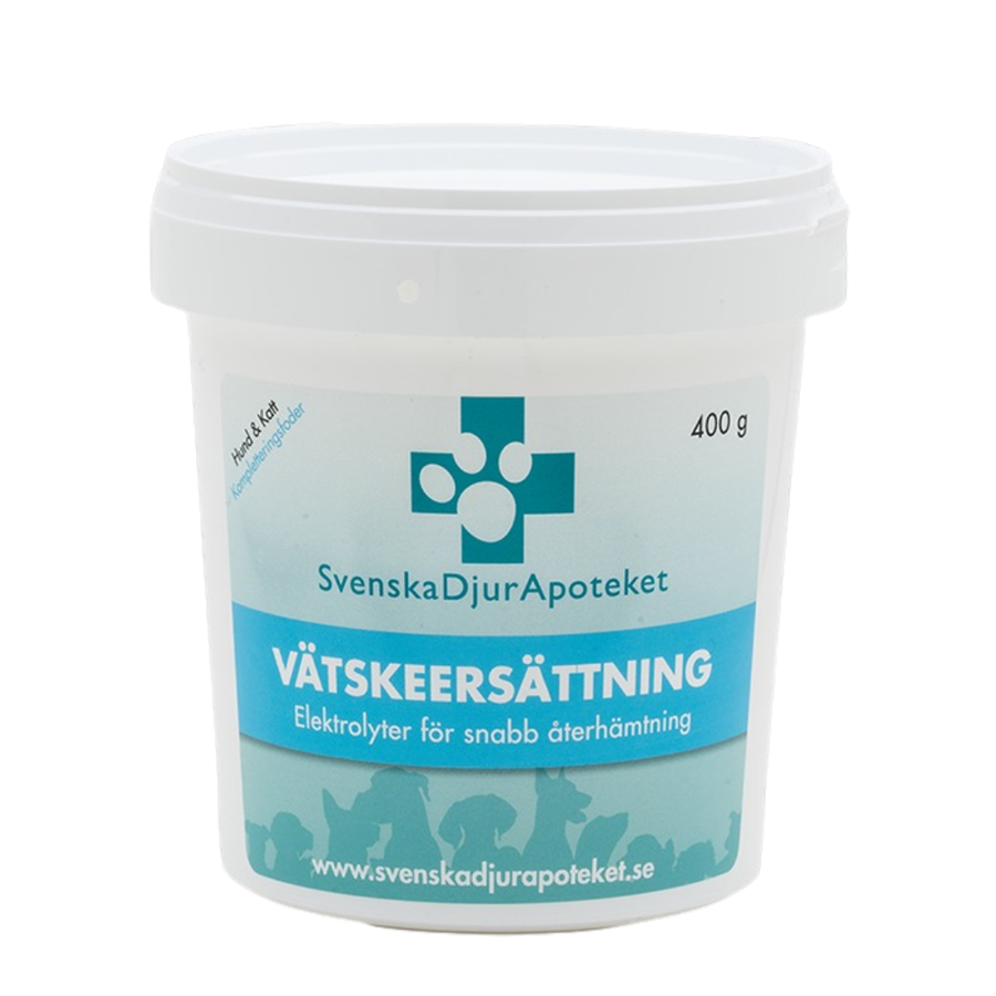 Svenska DjurApotekets Vätskeersättning är utvecklad för att ge din hund snabb näring och de viktigaste elektrolyterna som behövs för återhämtning vid tex varma dagar eller vid hårt arbete för aktiva hundar.